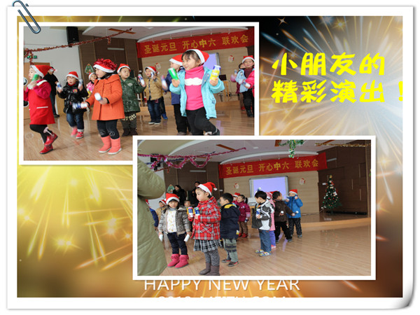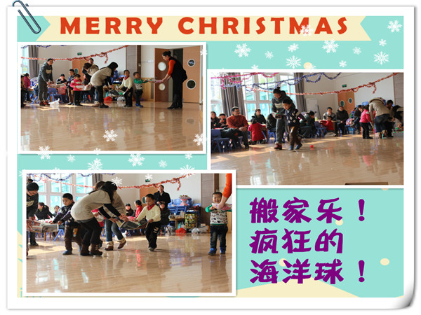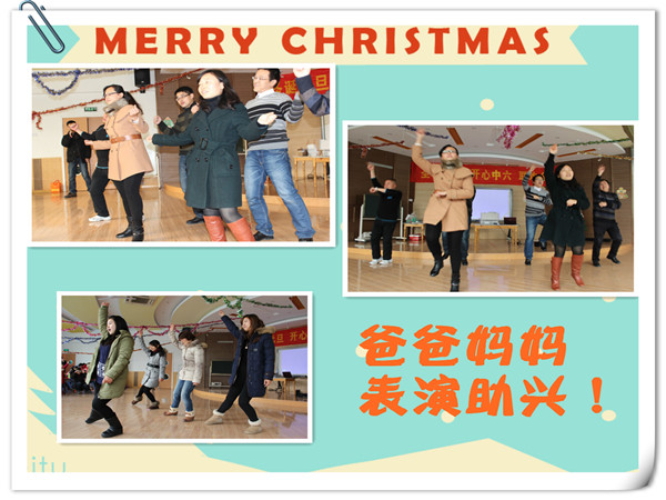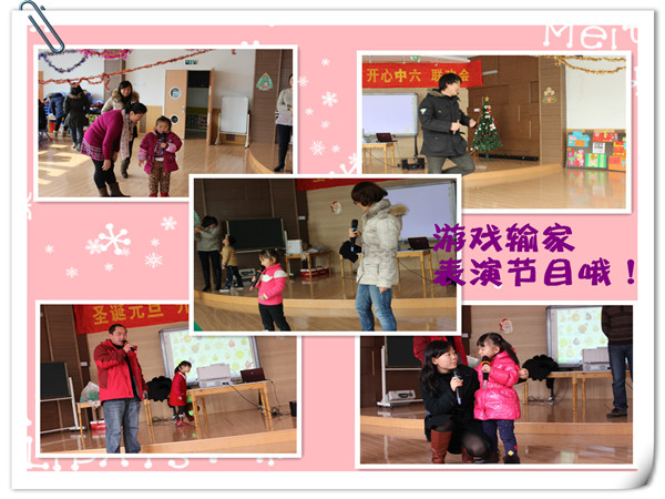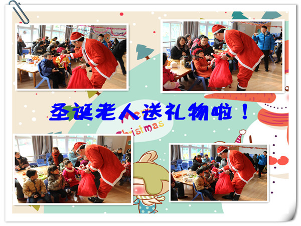 在Merry Christmas音乐声中,圣诞老人出场给大家发礼物啦!接着小朋友们把自己的愿望卡片粘贴好,依次挂在圣诞树上,等到来年晚会时,我们会把这些卡片打开,看看宝宝们的愿望友们有实现!