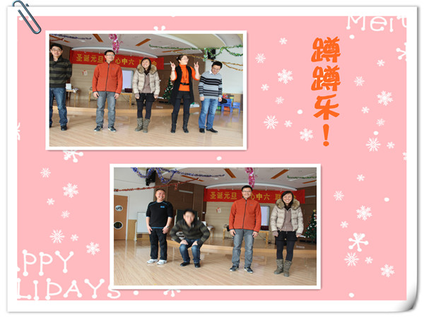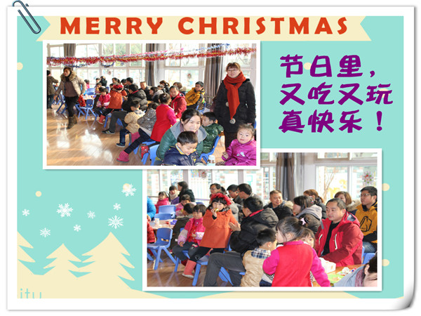 今天是个喜庆的日子,圣诞、元旦在即,我们班将两个节日合二为一,展开了热烈的庆祝活动,在欢乐的音乐声中,双庆节拉开了帷幕!