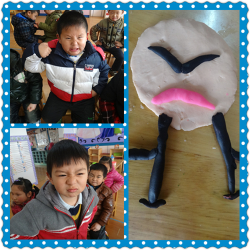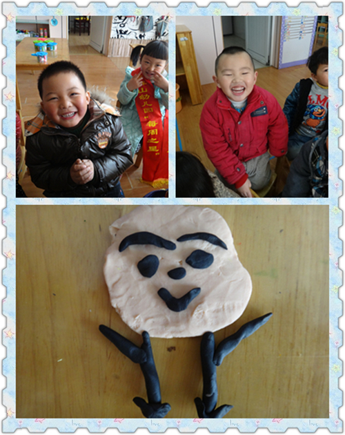 今天开展了综合活动《会变得脸》,活动目标主要是孩子们知道人脸上的表情表示高兴、伤心、愤怒等不同情绪,在认知经验基础上,孩子们能大胆想象和创作,用泥塑的方法表现出他们的不同情绪。这些泥塑作品有趣生动,可爱极了!