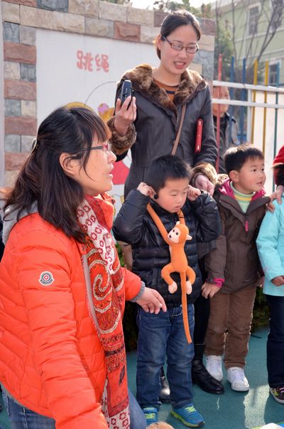 虽然没有高音的喇叭,家长和小朋友们却还是大声地宣传着,甚至不肯休息一下。略带干燥的稚嫩嗓音,传播着爱心的宣言。