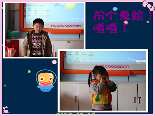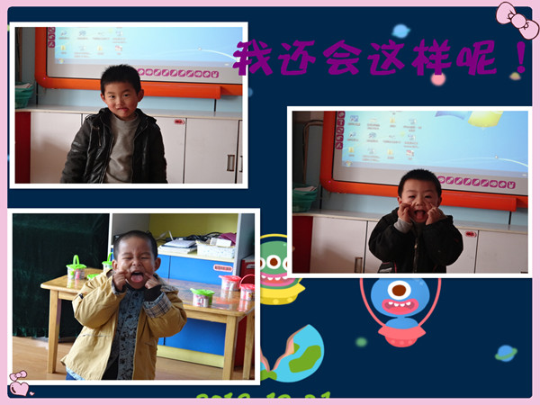 吐一吐舌头、瞪一瞪眼睛、翘一翘嘴巴、还会扮成凶猛的狮子,我们有丰富的表情!嘻嘻!